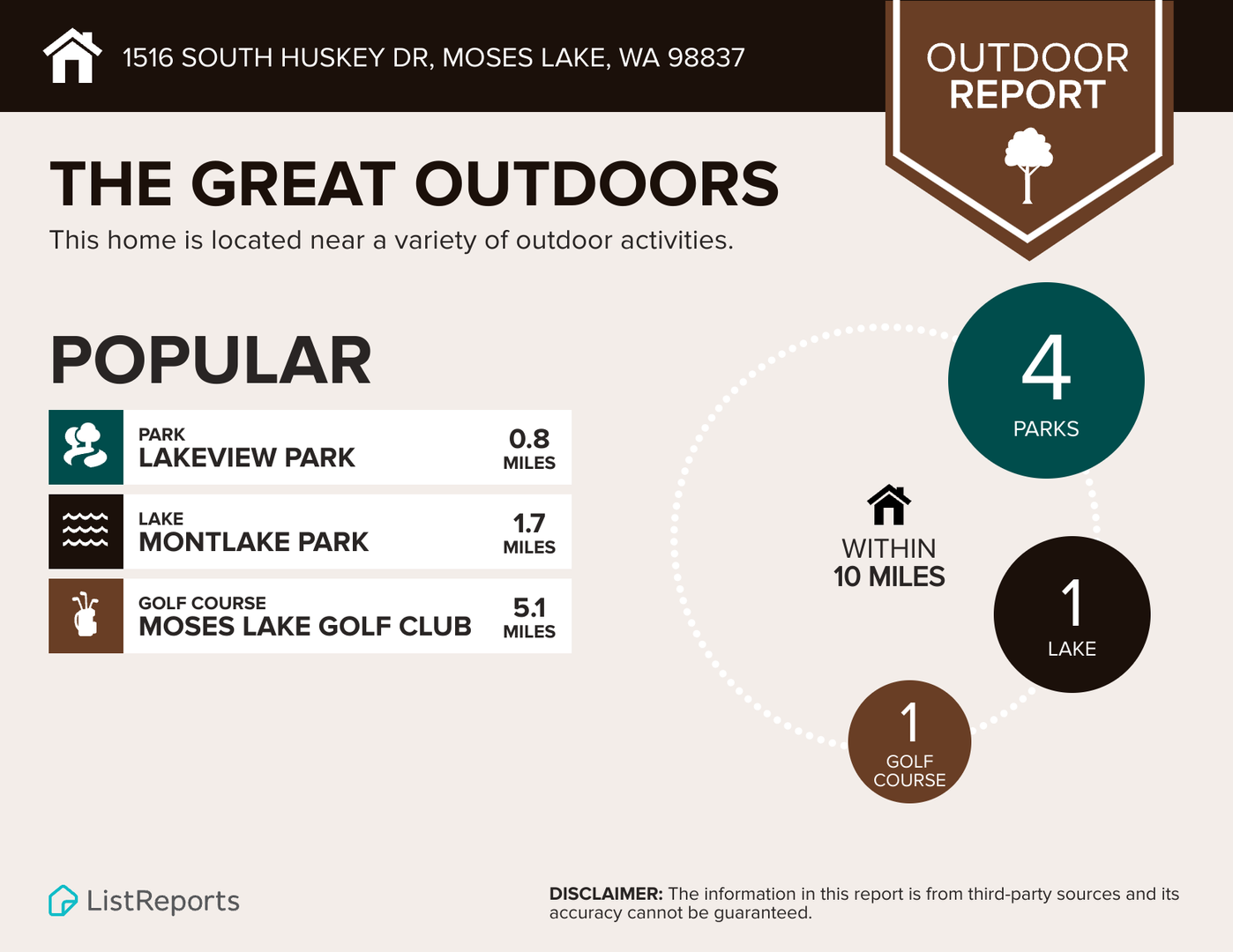 - Parks & Recreation: Blue Heron Park – 10-minute drive, Cascade Park – 8-minute drive, Moses Lake Sand Dunes – 15-minute drive