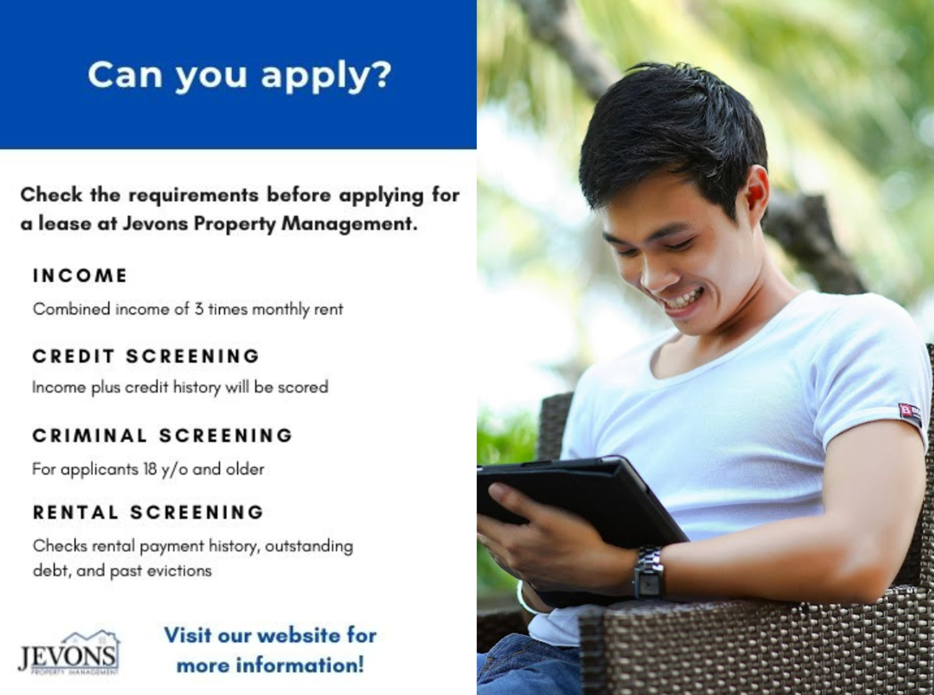 Jevons Property Management is dedicated to providing excellent service to all property owners and tenants. We value each individual and thank you for being part of our journey.